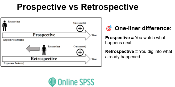 Study direction: Prospective (new data), Retrospective (existing data)
