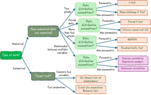 Data Types and Statistical Tests: As discussed above, the type of outcome (continuous, binary, ordinal, time-to-event) dictates the statistical tests and models used: